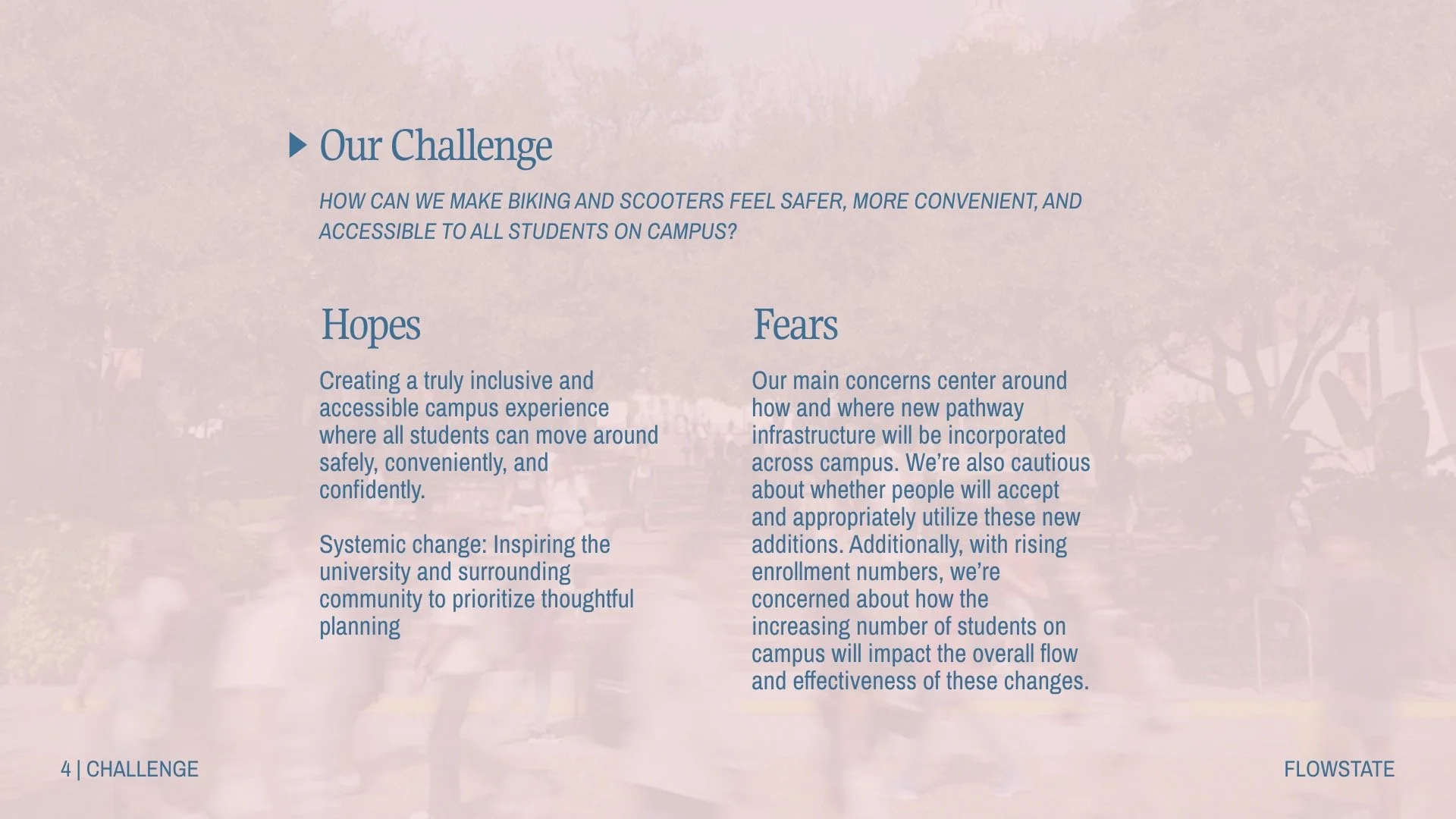 The beginning of our process focused on understanding the problem space and the people affected by it. We started by defining our design challenges and identifying key opportunities within the Bobcat community. Through journey mapping, we visualized relationships, pain points, and potential areas for impact. We also conducted Hopes & Fears assessments as well as an Empathy Mapping exercise to uncover emotional and functional needs from multiple perspectives.